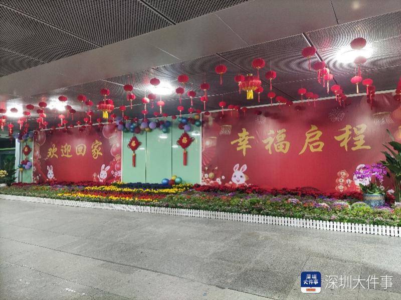 記者在羅湖口岸看到,口岸內(nèi)四處都掛上了大紅燈籠,依舊年味十足,現(xiàn)場溫馨布置了許愿墻、“深港同心 歡迎回家”字幅,還為旅客們準(zhǔn)備了鮮花、防疫禮包等小禮品。