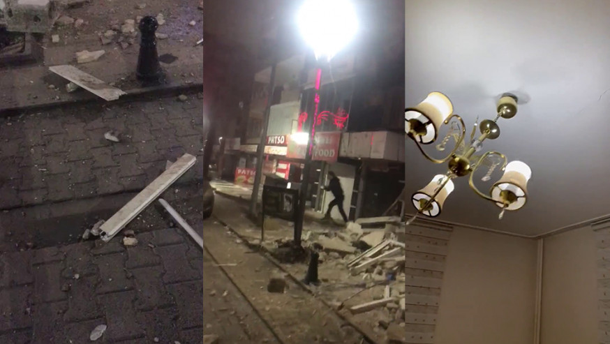 土耳其網(wǎng)民在Twitter發(fā)文稱,這場可怕的地震持續(xù)約2分鐘,照片可見他家中玻璃柜門破裂,陶瓷碗盤等容器碎成一地;亦有網(wǎng)民在地震當(dāng)下拍下屋內(nèi)情形,可見小床、窗簾和天花板吊燈不斷搖晃。社交平臺曝光的災(zāi)后畫面顯示,有建筑物被夷為平地,馬路上堆積大片碎石,不少民眾在街頭尖叫。