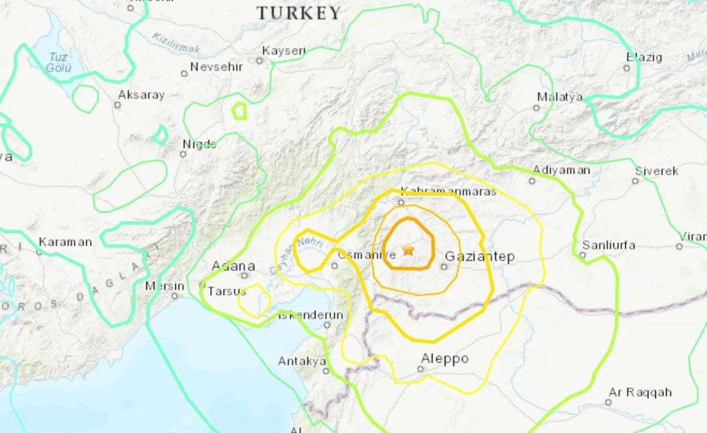 根據(jù)美國地質(zhì)調(diào)查局(USGS),土耳其當(dāng)?shù)貢r間6日凌晨4時17分發(fā)生規(guī)模7.8級地震,震央約位于加濟(jì)安泰普?。℅aziantep)努爾達(dá)伊鎮(zhèn)(Nurda??)東方23公里處(北緯37.16度,東經(jīng)37.12度),震源深度約24.1公里,約10分鐘后,再發(fā)生強(qiáng)度為6.7級的余震,暫無海嘯警報。歐洲-地中海地震中心(EMSC)及德國地球科學(xué)研究中心(GFZ)測得規(guī)模則為7.7級。以色列和黎巴嫩等周邊多國有震感,目前仍無具體傷亡消息。