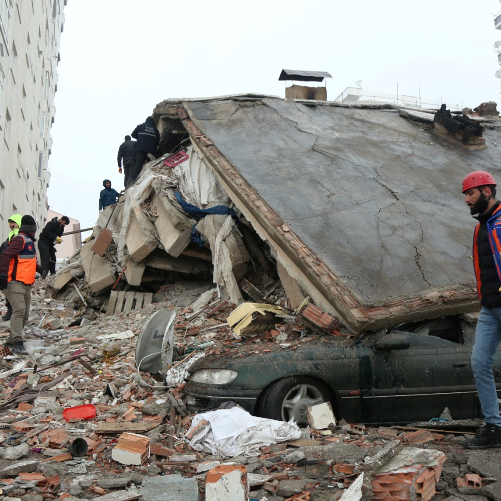 ▲土耳其奧斯曼尼耶發(fā)生地震后,一支救援隊在一座倒塌的建筑物上工作。路透社