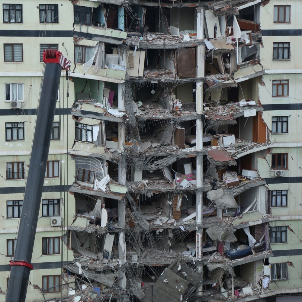 ▲土耳其迪亞巴克爾發(fā)生地震后受損建筑物的視圖。路透社