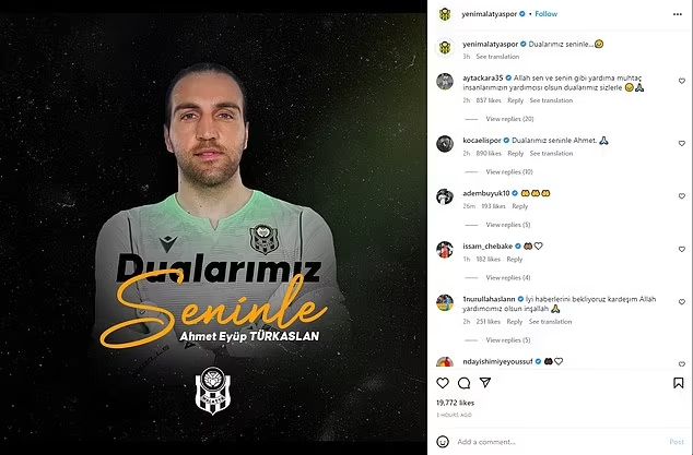 ▲土耳其球會哈塔伊斯波爾的負責人德米雷爾在IG上哭泣求助。