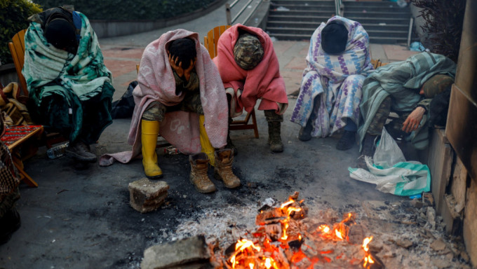 ▲重災(zāi)區(qū)哈塔伊省災(zāi)民圍在營火旁取暖。 路透社