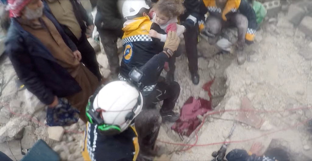 ▲敘利亞叛軍控制的城鎮(zhèn)一名兒童在地震廢墟中被救。路透社