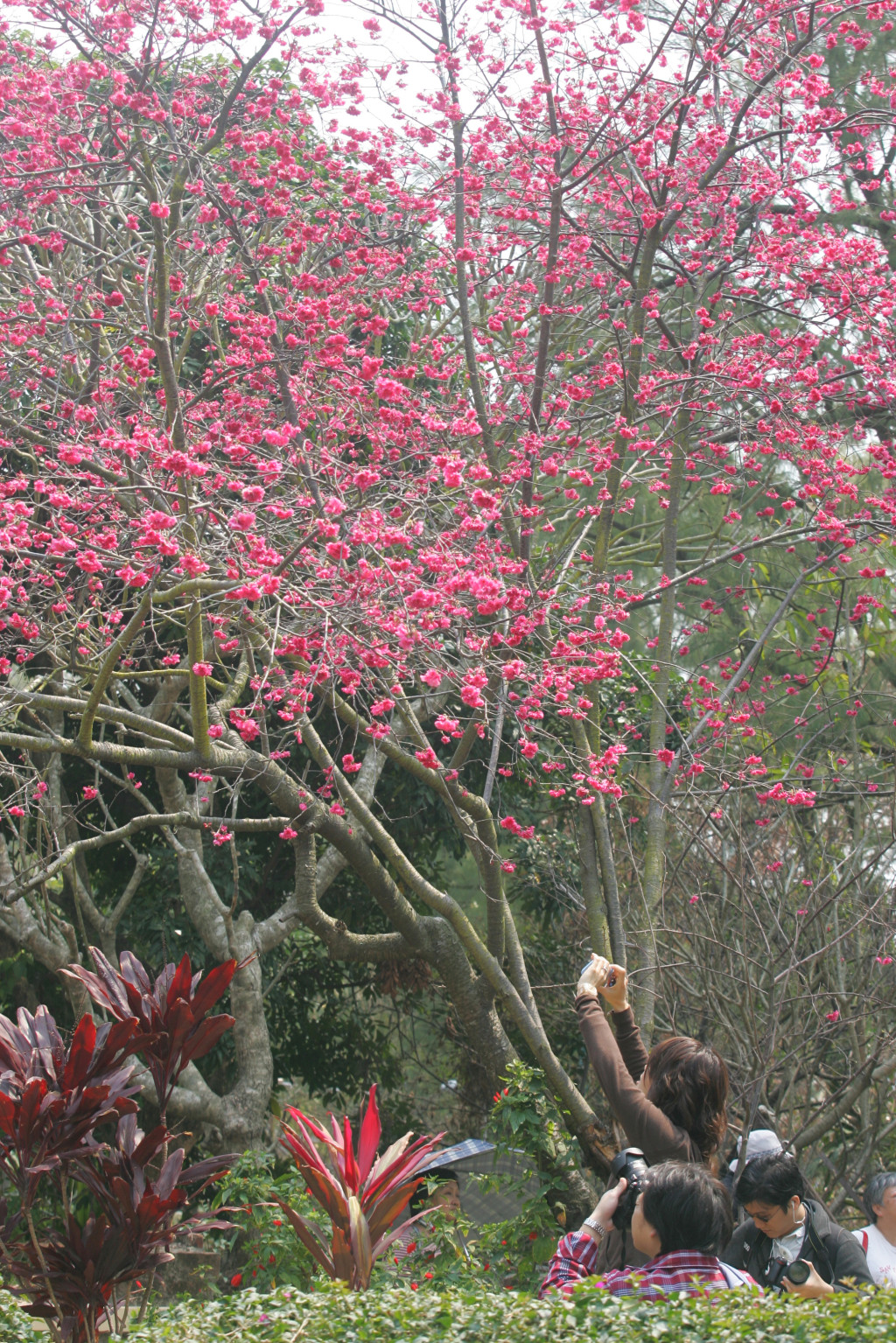長(zhǎng)洲都有櫻花!位于長(zhǎng)洲關(guān)公亭的櫻花樹,是30多年前由臺(tái)灣移植來(lái)港,每年2月時(shí),樹上會(huì)開出鮮艷的桃紅山櫻,而且十分茂盛,不少人會(huì)專程到長(zhǎng)洲賞櫻。