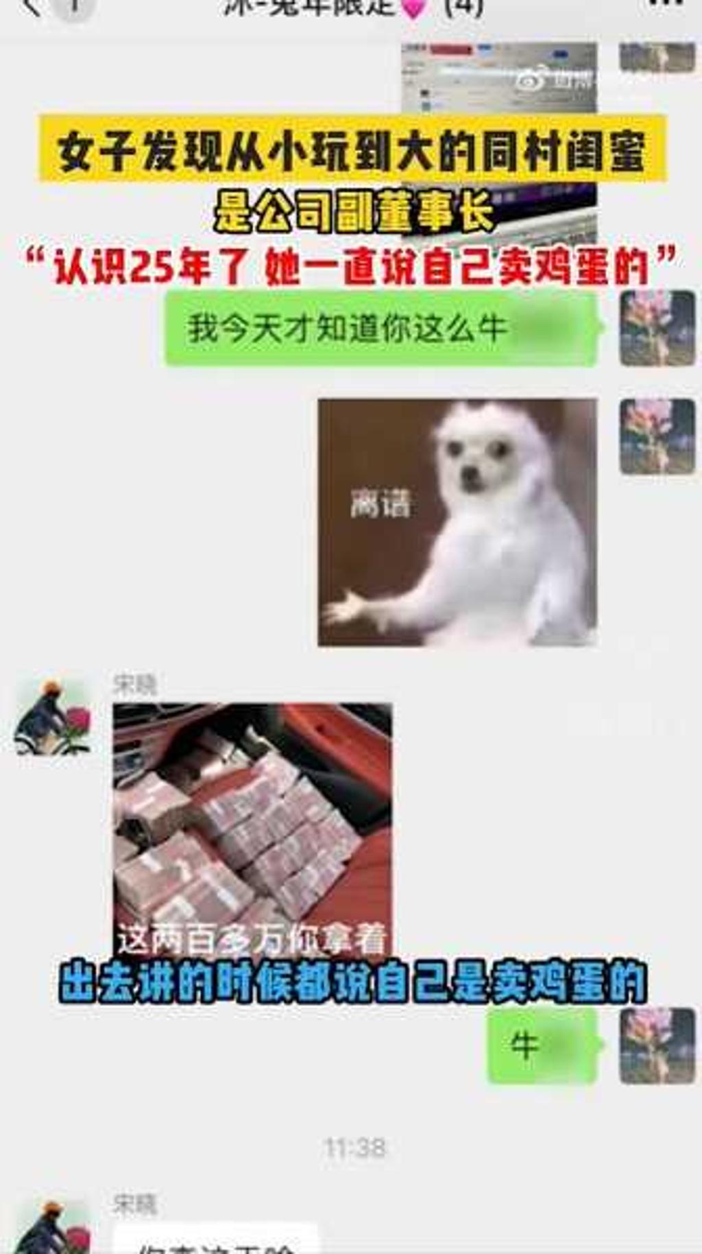 河南省鄭州市有一名女子,近日發(fā)現(xiàn)認(rèn)識25年的同村閨蜜,竟是公司副董事長,由于2人從小玩到大,幾乎天天見面,平常詢問工作內(nèi)容,對方總說自己是賣雞蛋的,如今得知真相令她目瞪口呆。