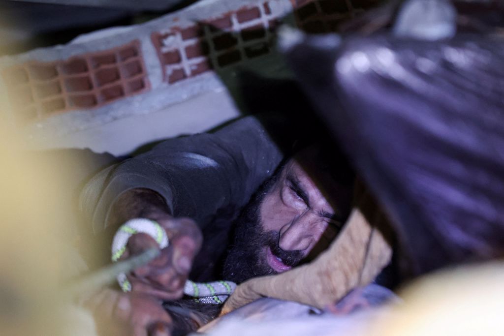根據(jù)路透社報(bào)導(dǎo),穆埃尼(Abdulalim Muaini)一家4口住在南部哈塔伊省,也是此次大地震的重災(zāi)區(qū),劇烈晃動當(dāng)下,房子硬生生倒塌,他與妻子、一對女兒當(dāng)場受困在瓦礫堆內(nèi),而穆埃尼的雙腿被一塊巨大水泥磚塊重壓著,動彈不得。 2天過去了,不知道未來是生是死,他仍陪伴著妻子,盡管當(dāng)時(shí)她早已失去心跳。