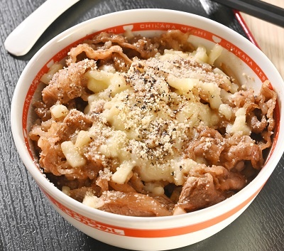 芝士燒牛肉丼,香港新分店限定口味,把燒牛肉加上水牛芝士碎及巴馬臣芝士粉,拌勻來吃更滋味。