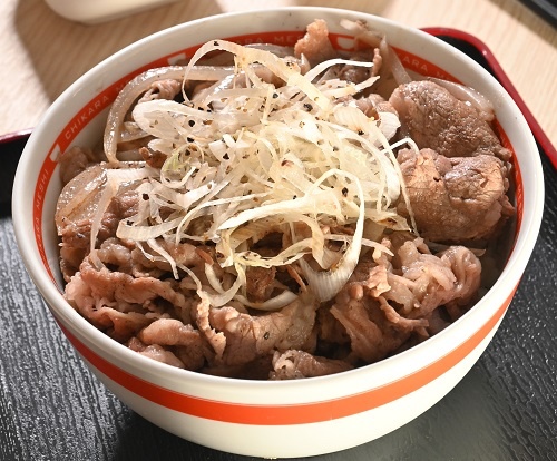 鹽燒牛肉丼,牛肉以特調(diào)鹽燒醬汁代替招牌燒汁,咸香味凸顯牛肉的原汁原味,伴蔥絲同吃清爽芳香。
