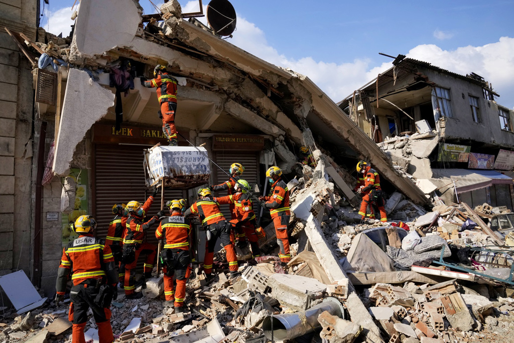 ▲香港救難隊11日在哈塔伊省(Hatay)殘骸中尋找生還者。 美聯(lián)社