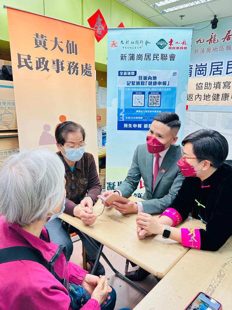 ▲深水埗民政處助市民填寫過(guò)關(guān)健康申報(bào)。