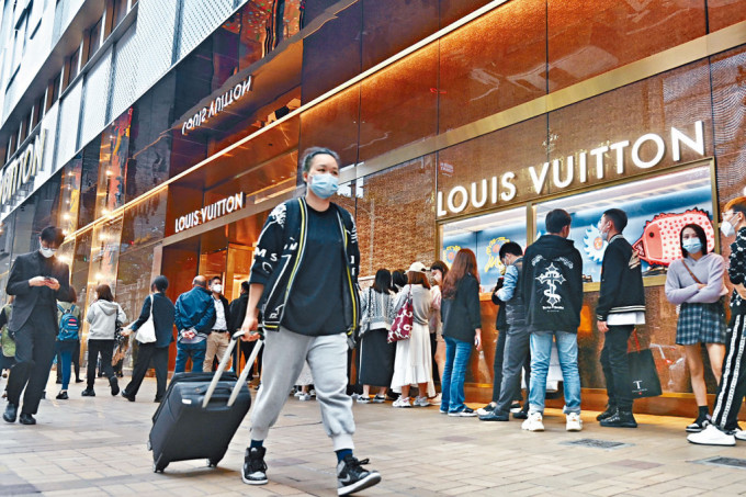 ▲內(nèi)地與香港全面通關(guān)后,尖沙嘴名店外重現(xiàn)排隊人龍。