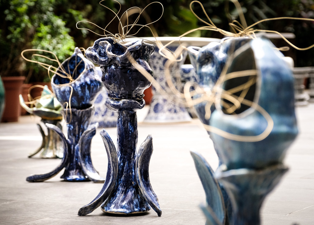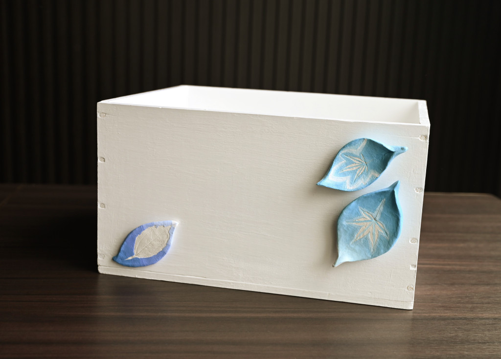 ▲新作品《愛在搖籃》,使用了黏土樹葉拓印的技巧。