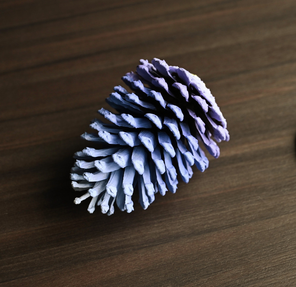 ▲May教導癌癥康復者為松果上色,不少參與者更是首次接觸藝術。