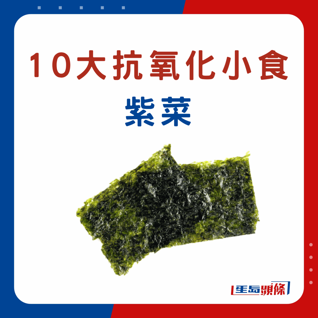 紫菜含豐富的多酚、類黃酮包括兒茶素、花青素、單寧及胡蘿卜素,有抗氧化之功效,同時亦含有蛋白質(zhì)及纖維等營養(yǎng)素。
