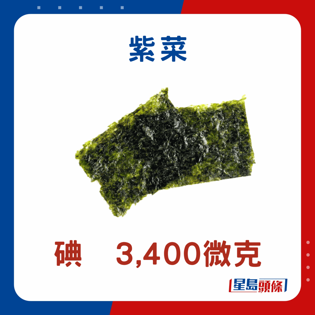 每天成年人需要攝取150微克碘就足夠,即約2包重約2克的零食紫菜。