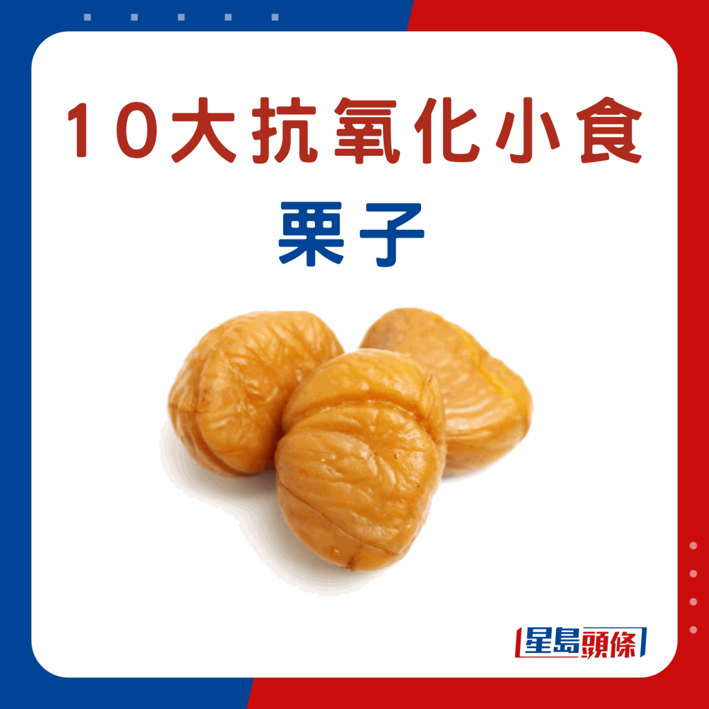 栗子含維他命C、酚類化合物如沒食子酸、鞣花酸、單寧、兒茶素等,具有抗氧化的功能。