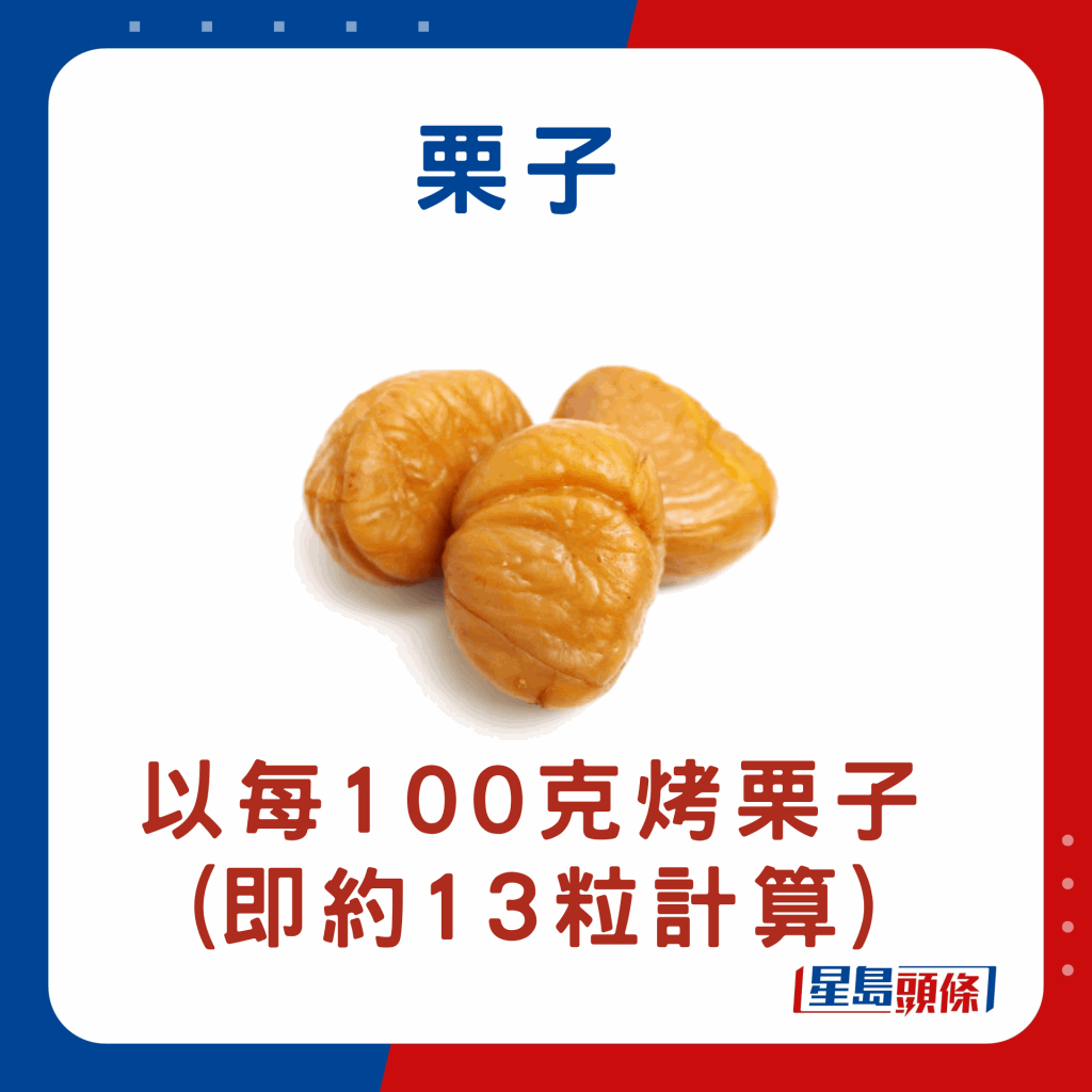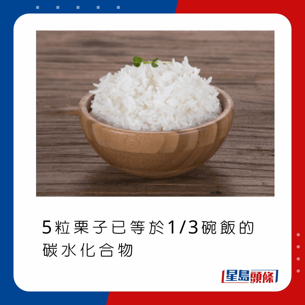 大概5粒栗子已等于1/3碗飯的碳水化合物,故進食時需注意分量。