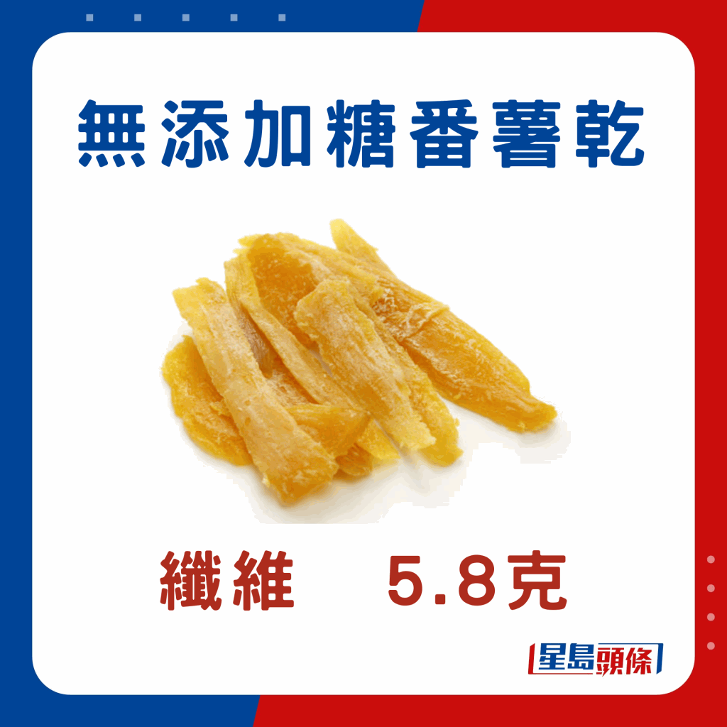 番薯干含豐富纖維,對預(yù)防便秘很有功效,加上本身含豐富果糖,能提供天然甜味,非常適合嗜甜人士。