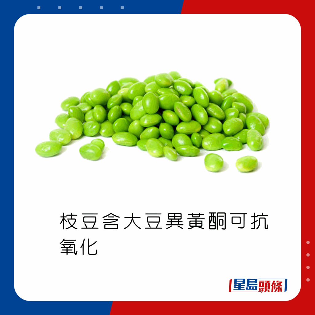 枝豆是大豆未成熟時所采摘的豆莢,與大豆一樣,含豐富大豆異黃酮,是多酚的一種,有抗氧化的功效。
