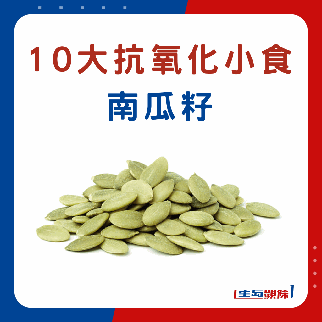 南瓜籽含多種酚類化合物及多酚,有抗氧化的功用。