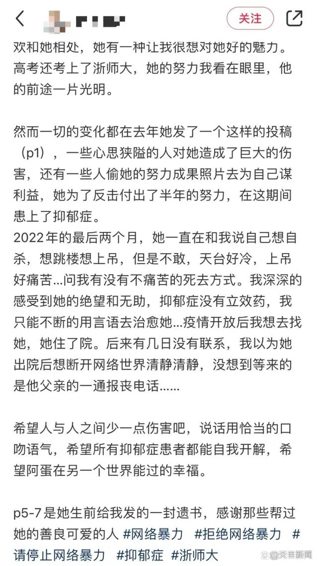 染粉色頭發(fā)被網(wǎng)暴,杭州女研究生因抑郁癥自殺,曾奮力維權(quán)對(duì)抗網(wǎng)暴