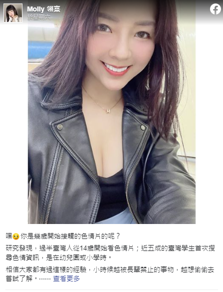 “你是幾歲開始接觸的色情片的呢?”Molly 翎熹昨指出,有研究發(fā)現(xiàn),過半臺灣人從14歲開始看色情片,近五成的臺灣學生首次搜尋色情信息,更是在幼兒園或小學時。她坦言,相信大家也都有過這樣的經驗,小時候越被長輩禁止的事物,越想偷偷去嘗試了解,而這其中,當然就包含了性。