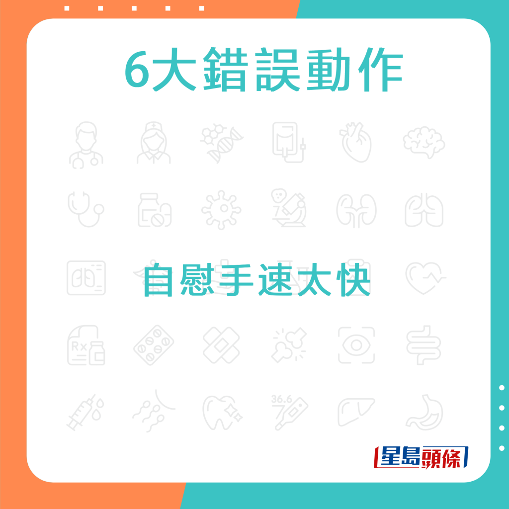 臺(tái)灣泌尿科醫(yī)生程威銘早前在其YouTube頻道《程威銘醫(yī)師Dr.DKK》指出,自慰6大錯(cuò)誤動(dòng)作影響本身性功能,導(dǎo)致日后發(fā)生性行為時(shí)遇到困難或障礙。他狠批以下6大錯(cuò)誤動(dòng)作: