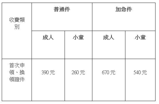 回鄉(xiāng)證申請/換領(lǐng)收費(fèi)表