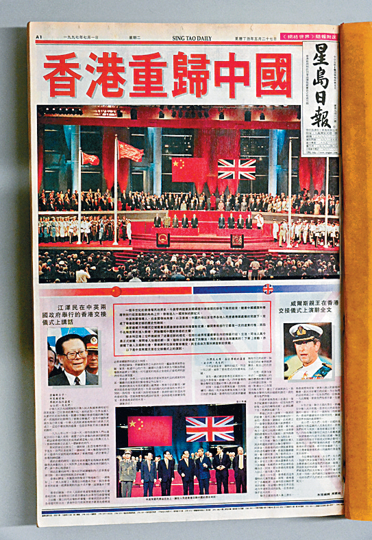 ▲昔日報紙保存良好,圖為97年回歸當(dāng) 日的《星島日報》。