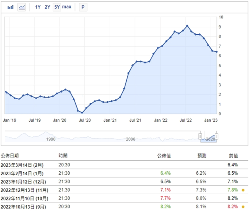 ▲近五年美國居民消費(fèi)價(jià)格指數(shù)(CPI)變動一覽。英為財(cái)情
