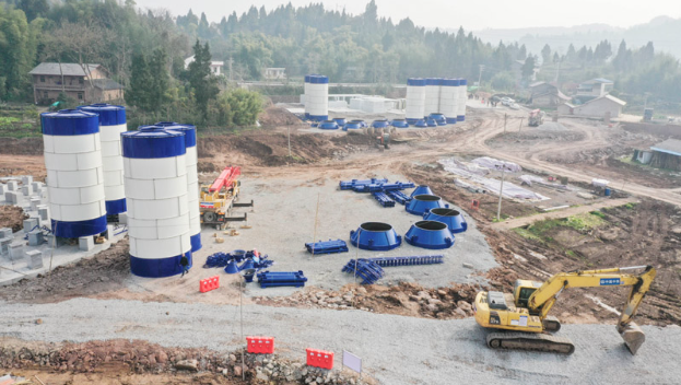 ▲成渝中線高鐵今年初全線首樁開鉆,圖為工作人員在重慶市大足區(qū)的工程現(xiàn)場作業(yè)。 新華社