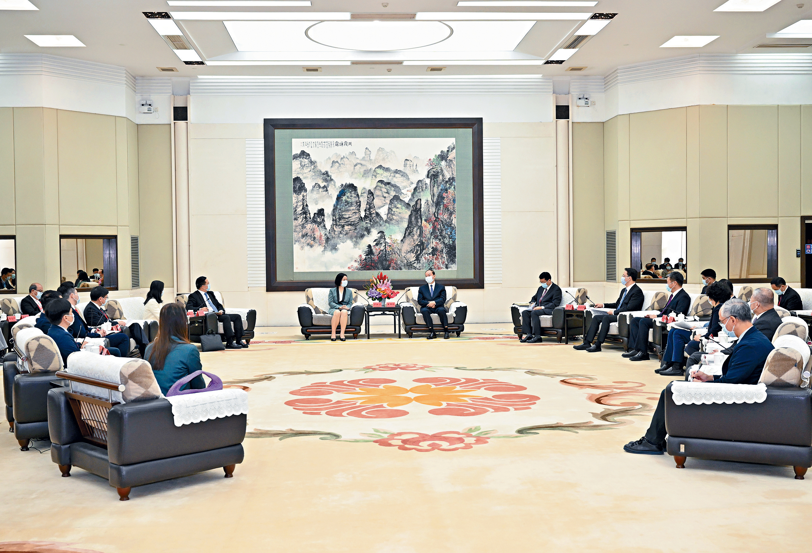 省領(lǐng)導(dǎo)張虎、張曉強(qiáng)亦有參加會(huì)見(jiàn)。據(jù)了解,原定安排會(huì)面只有約1個(gè)半小時(shí),但會(huì)面期間氣氛融合,會(huì)面時(shí)間較原定時(shí)間多了一倍。