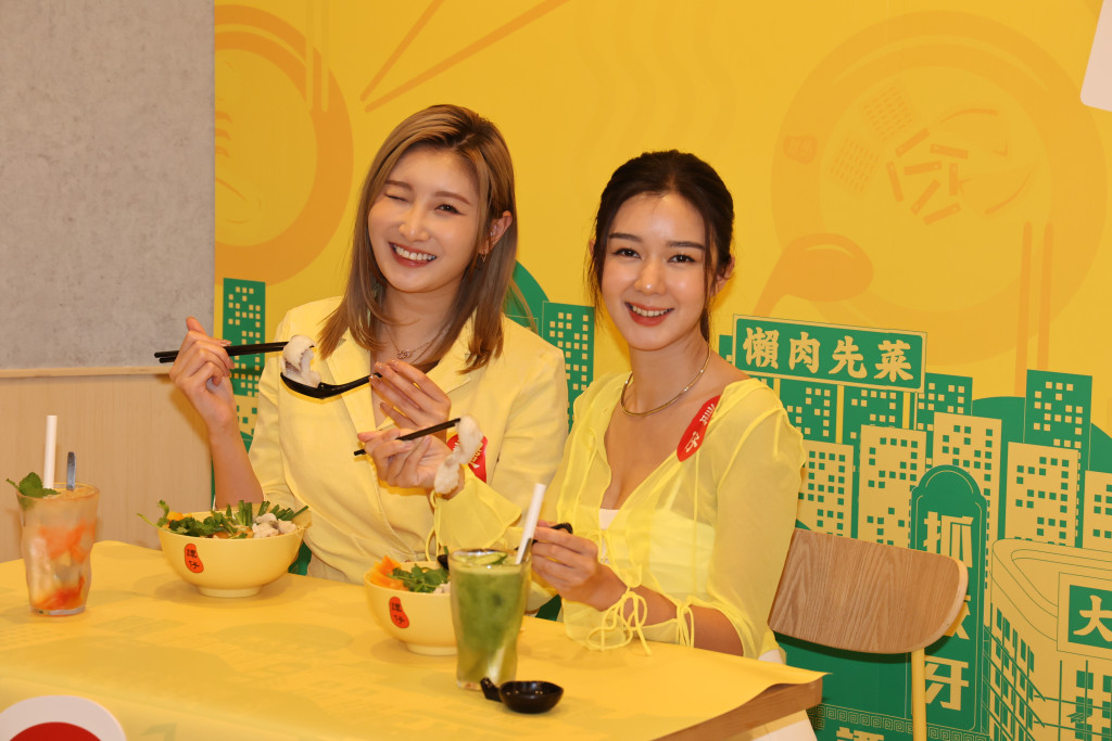 ▲譚仔不時(shí)請來藝人宣傳活動(dòng)或新口味米線。圖為沈殷怡及麥明詩。