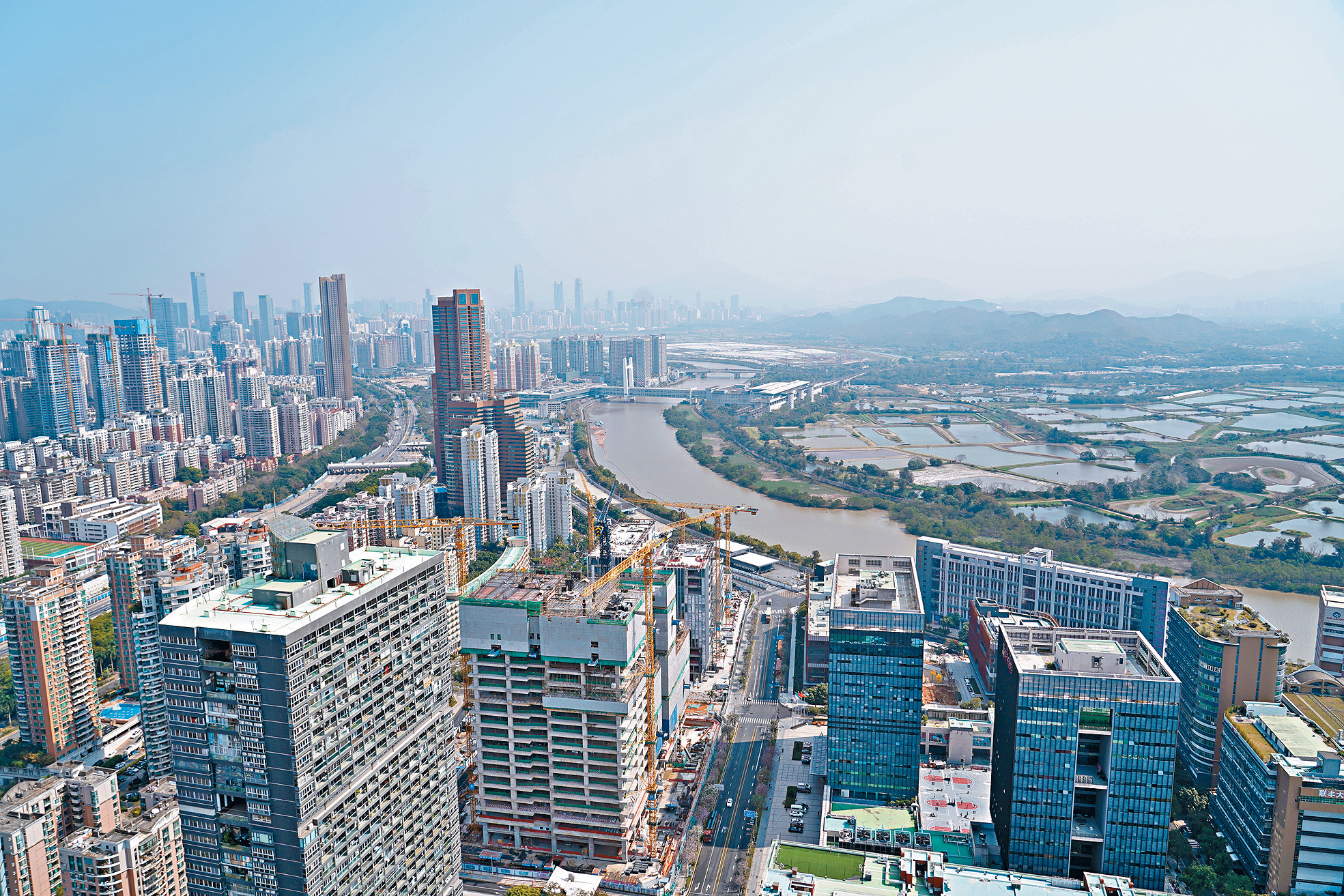 ▲深圳市福田區(qū)委書記黃偉帶領(lǐng)團(tuán)員參觀中心,并從高處俯瞰深圳河。