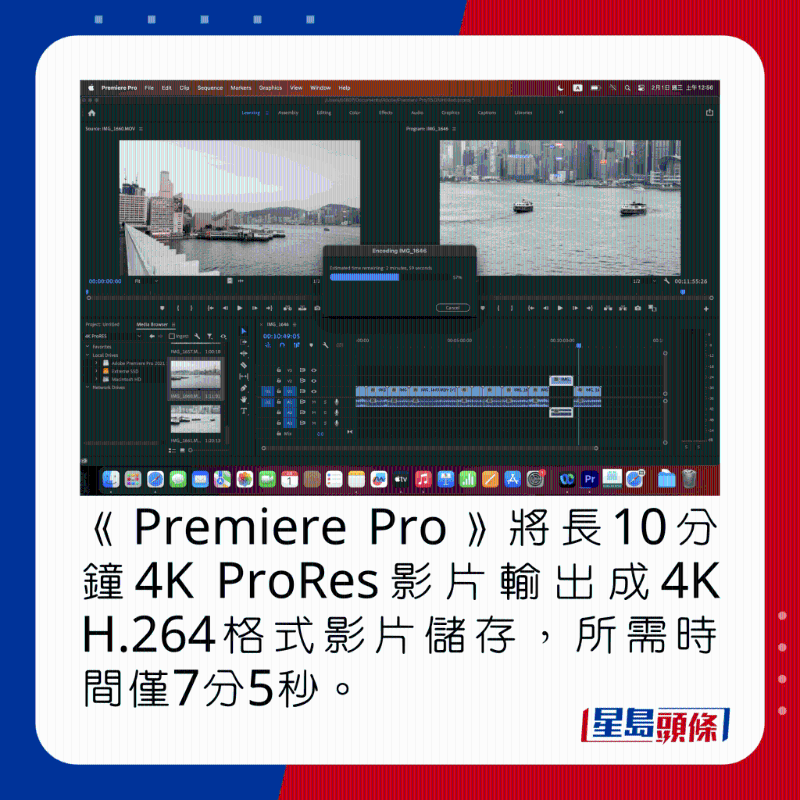 來到效能,MacBook Pro 14寸所用芯片是M2 Pro,具備12核心CPU及19核心GPU,支持200GB/s內(nèi)存頻寬,以《Geekbench 5》測試,單核及多核跑分別為1,959及15,156,至于針對GPU的Open CL及Metal成績,分別達44,916及50,508,再以《CinBench R23》測試, 單核及多核跑分為1,629及14,767,相比M1 Pro版本效能確有所提升。 系統(tǒng)儲存方面,新作在《Blackmagic Disk Speed Test》測試中,讀取及寫入速度分別為4,848MB/s及6,029MB/s,就數(shù)字來看,表現(xiàn)相當出色。 實際使用方面,經(jīng)《Adobe Premiere Pro》剪輯片長10分鐘的4K ProRes影片,即使僅以電池驅(qū)動,過程非常順暢爽快,再輸出成4K H.264格式影片儲存,所需時間僅7分5秒,完全能滿一眾追求高效率的媒體創(chuàng)作者或?qū)I(yè)攝影師。 值得一提的是,除了M2 Pro,新MacBook Pro 14寸亦可選配最高12核心CPU及38核心GPU的M2 Max芯片,甚至配備最高96GB內(nèi)存及8TB SSD,跟16寸型號一樣,可以追求最頂級配置,唯一差別,就只有熒幕大小而已。