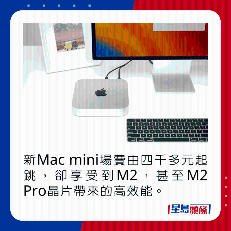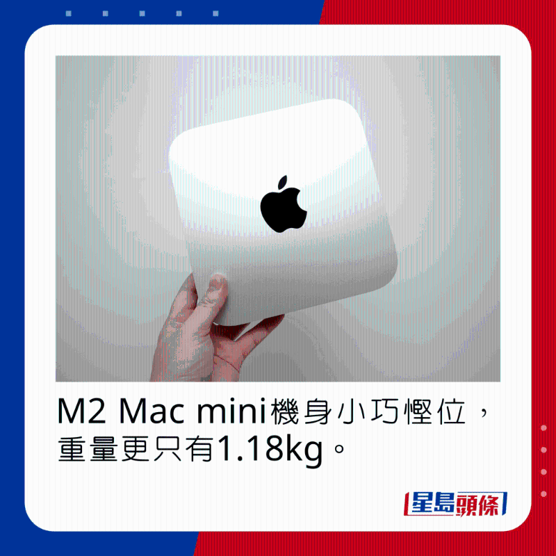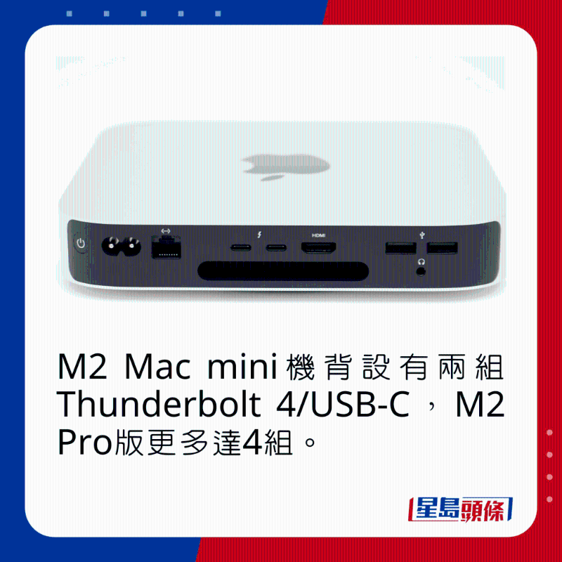 說到Mac mini,作為迷你電腦,新一代入場費仍是由四千多元起跳,但已可以享受到M2,甚至M2 Pro芯片帶來的高效能。 今日測試的是最入門的M2版本,具備8核心CPU及10核心GPU,內(nèi)置8GB內(nèi)存及256GB SSD,外形仍是熟悉的小盒子,機面不設(shè)任何插口,機背則有齊2組兼容Thunderbolt 4的USB-C、2組USB-A、HDMI、3.5mm及Gigbit LAN插口,而且跟新MacBook一樣,除了可經(jīng)HDMI及Thunderbolt 4分別輸出8K及6K影像訊號,還支持WiFi 6E無線網(wǎng)絡(luò),絕對是機身雖小,五臟俱全的例子。