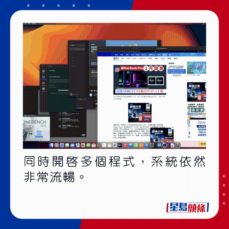 先說新MacBook Pro,是次測試為14寸,配備12核心CPU及19核心M2 Pro芯片,內(nèi)置16GB內(nèi)存及1TBSSD。 外觀方面,新MacBook Pro 14寸跟去年初推出的M1 Pro版本未見太大分別,沿用鋁合金外殼,機身線條依舊圓滑,厚度只有1.5cm,重量為1.6kg,不失輕便之余,卻有著比13寸型號更強的效能,若然戶外工作時需要強大運算及圖像能力,14寸機款可謂在流動性與效能之間的最佳平衡。
