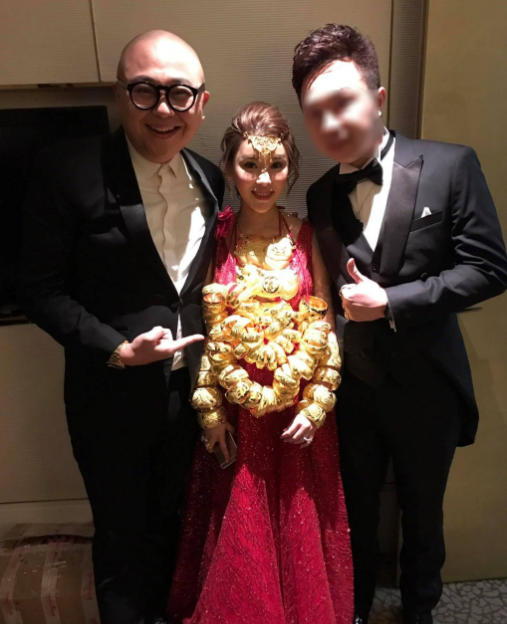 ▲網(wǎng)上流傳她出嫁的照片,合照中更有Bob林盛斌,未知他是婚禮司儀還是來賓,照片中可見蔡天鳳全身掛滿金器非常奢華。