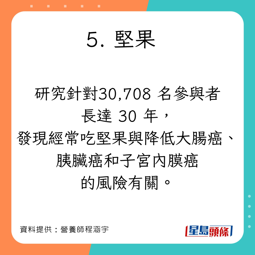 臺灣營養(yǎng)師程涵宇曾分享了12款食物,指有助預(yù)防大腸癌、乳癌、胃癌、前列腺癌等常見癌癥。