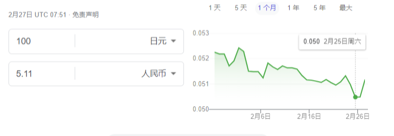 ▲近一個(gè)月日元對(duì)人民幣走勢(shì)圖。