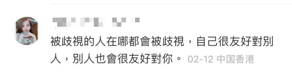 內(nèi)地少女的言論獲數(shù)百人贊好,有不網(wǎng)民留言表示認(rèn)同,并紛紛分享自身經(jīng)歷,指在港旅游說(shuō)普通話(huà)沒(méi)問(wèn)題,更大贊港人“文明”、“客氣”。還有不少旅客分享自己獲港人相助的經(jīng)歷,問(wèn)路時(shí)即使言語(yǔ)不同,港人都會(huì)親自帶他到目的地。有網(wǎng)民就直罵,說(shuō)自己在香港被歧視的人,“有帶故意黑的節(jié)奏”,指歧視是“流量密碼”。