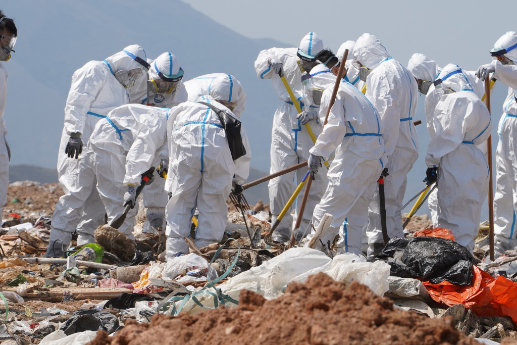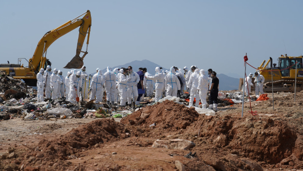 西九龍總區(qū)刑事部警司鐘雅倫表示,工人用鏟車將垃圾掘出,再由警員逐一搜索證物,另外有探員利用航拍機(jī)視察搜查情況。搜索范圍面積約一個(gè)足球場(chǎng)大,他形容“都幾深”,約3至5米。今日出動(dòng)百多名警員到鎖定的范圍搜查,包括機(jī)動(dòng)部隊(duì)、重點(diǎn)搜查組及重案組。鐘表示“今日一定完唔到,要做多一兩日,共需兩三日。”