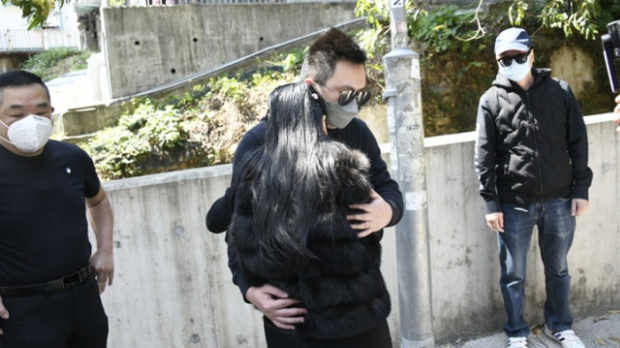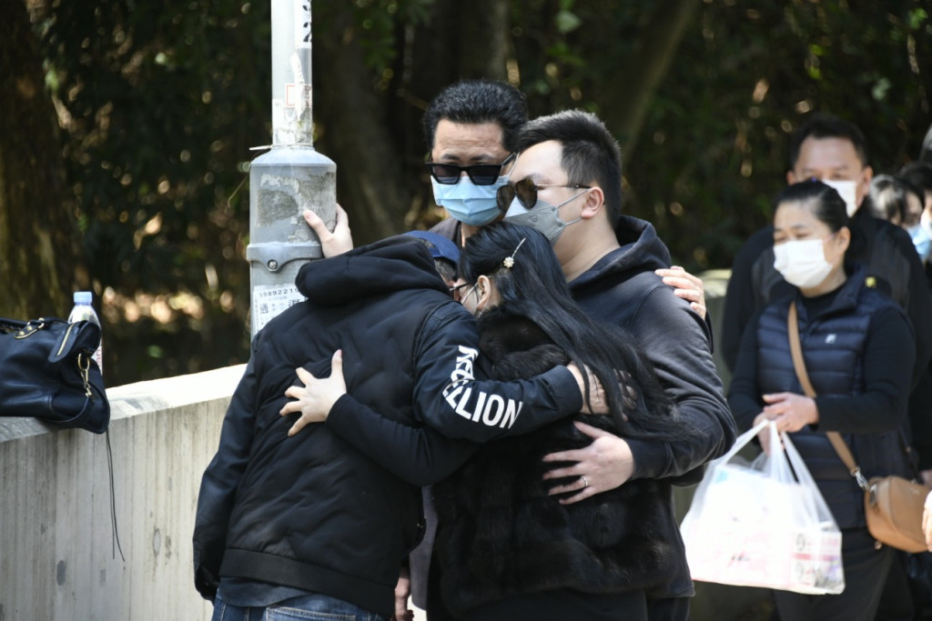 28歲社交名媛蔡天鳳Abby Choi遭肢解烹尸,現(xiàn)任丈夫Chris陪同Abby父母等10多名親友,今早(28日)到沙田富山殮房認尸后, 一行人返回案發(fā)現(xiàn)場的大埔龍尾村進行路祭,其間一眾親友黯然神傷,Chris更與岳母Abby的母親相擁,表現(xiàn)激動。
