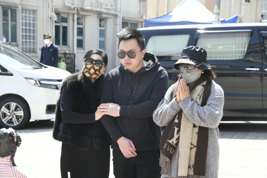 ▲死者丈夫Chris(中)與岳母五姐到場拜祭。