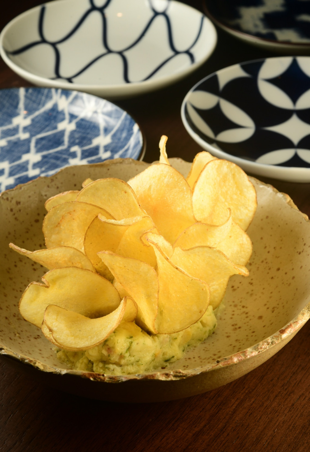 這間新日式料理店,菜單很豐富,像是日式炸雞Karaage,精挑皮脆肉嫩的雞腿肉,放入用梳打水調(diào)成的炸漿中炸至脆卜卜。佐藤順認為,以梳打水代替啤酒混合而成的炸漿,不但酥松香口,炸漿亦很薄,吃起來輕盈不膩。至于伴碟的醬汁,是傳統(tǒng)的月見汁,主要以日本醬油、雞汁熬制而成,加上一顆用醬油略為浸制的雞蛋黃,拌勻蛋黃上的七味粉,令雞塊入口鮮美惹味。