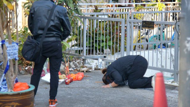 ▲有3名男女專程從廣東來港進(jìn)行路祭。