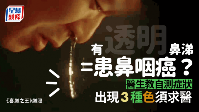 ▲鼻涕透明等于患鼻咽癌?醫(yī)生指出現(xiàn)3種色須求醫(yī),并教自測(cè)癥狀。