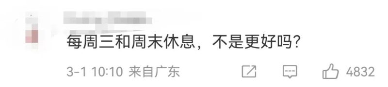 還有網(wǎng)友表示,如果每周三和周末休息,可能更好: