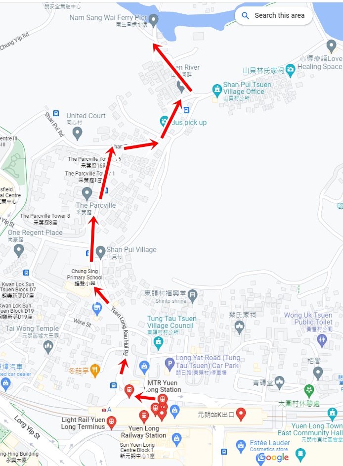 由元朗站行約20分鐘到南生圍
